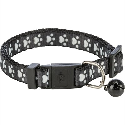 De Trixie Halsband Kat Print Poot Elastisch Assorti is een elastische kattenhalsband met belletje,