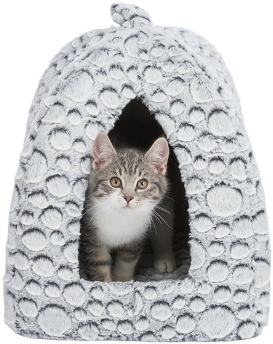 De Trixie Kattenmand Iglo Mila Pluche Wit/Grijs 32X32X42 cm is een originele schuilplaats voor de kat of kleine hond&#44
