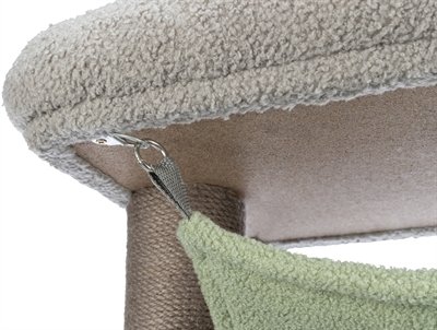 De Trixie Kitten Krabpaal Lunito Grijs/Mintgroen 71 cm is een krabpaal voor kittens in schapenvacht look met schuilplaats,