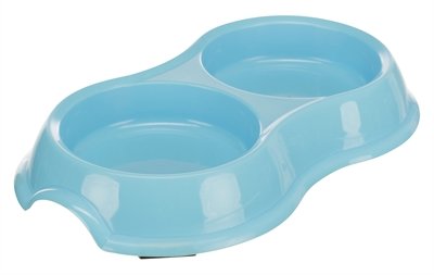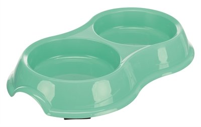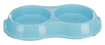 De Trixie Voerbak / Waterbak Dubbel Kunststof Assorti 2 x 200 ml per 4 stuks is een dubbele voerbak en waterbak voor de kat van kunststof&#44