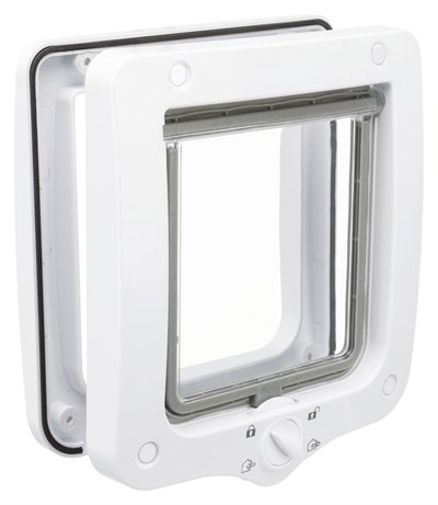 Het Trixie 4-Weg Kattenluik Wit 22X10 cm is een huisdierluik met vier afsluitmogelijkheden (dicht&#44