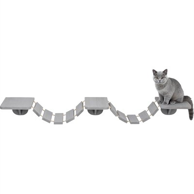 Deze Trixie Klim en Klauterladder Wand Taupe 150 x 30 cm bestaat uit enkele speelplateaus voor katten verbonden met een ladder,