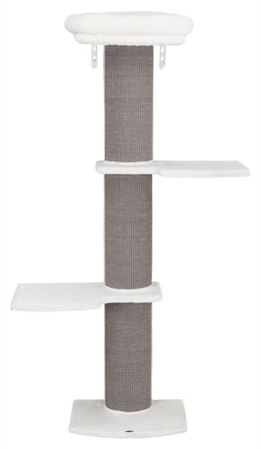 De Trixie Krabpaal Acadia Voor Aan De Muur Grijs 160 cm is een moderne krabpaal met sisal krabvlakken en drie ligvlakken die aan de muur bevestigd kan worden. Ideaal als je meerdere katten hebt of jouw kat graag meerdere ligplekken biedt! De krabpaal is uitgevoerd met een paal van grijs sisal om aan te krabben en drie witte ligplateaus. Het bovenste plateau is voorzien van een afneembare relaxmand&#44
