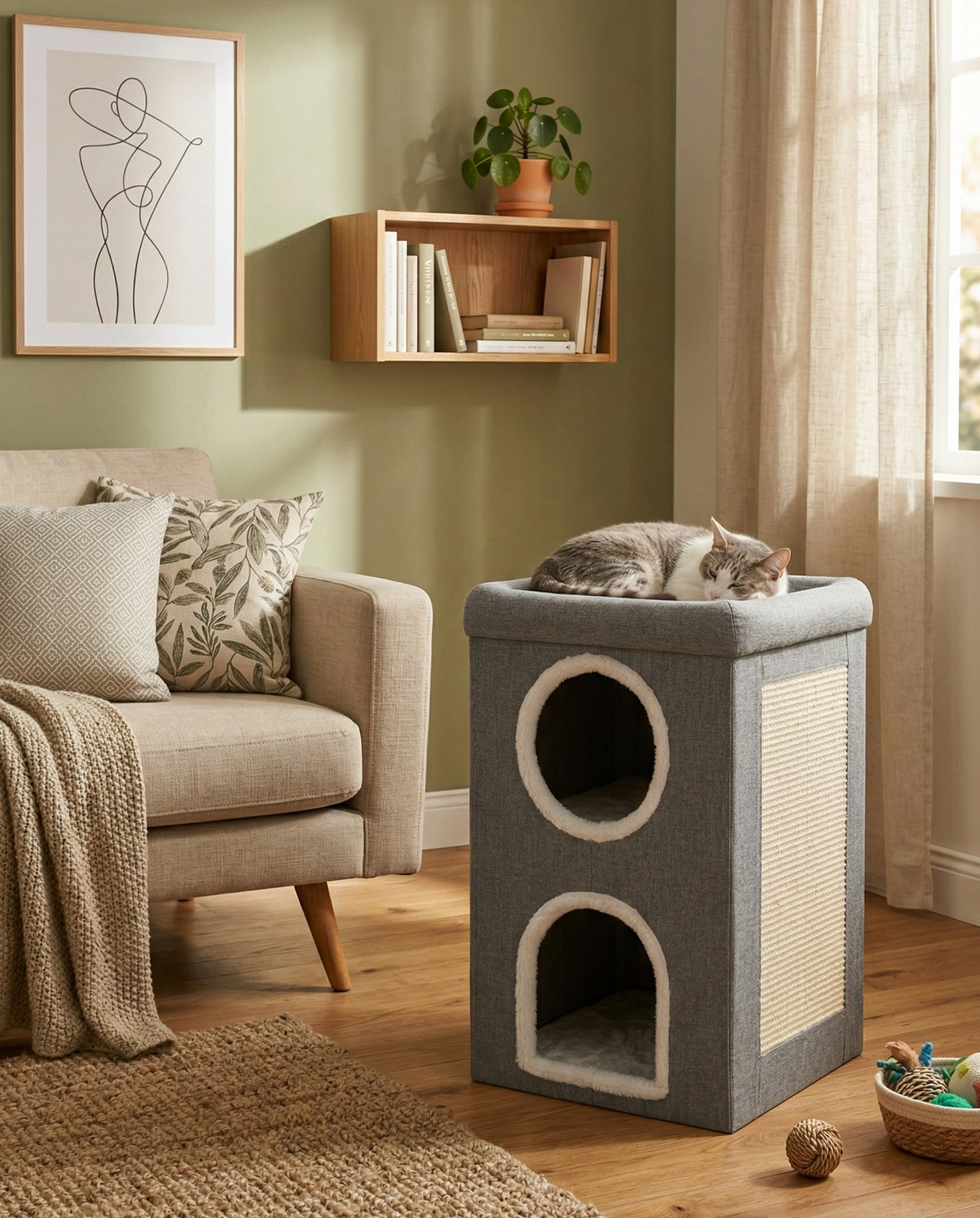 Dit kattenmeubel is geschikt voor volwassen katten en jonge katten die behoefte hebben aan een eigen rustplek. De verschillende niveaus maken het interessant voor katten die graag klimmen of hun omgeving van een iets hogere plek bekijken.