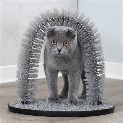 De Trixie Massage- En Vachtverzorgingsboog Grijs van 36 x 33 cm bevordert de natuurlijke vachtverzorging spelenderwijs,