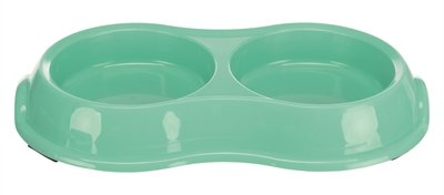 De Trixie Voerbak / Waterbak Dubbel Kunststof Assorti 2 x 200 ml per 4 stuks is een dubbele voerbak en waterbak voor de kat van kunststof,